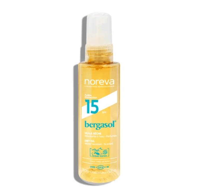 Featuring a system of 3 ultra-broad-spectrum filters, Bergasol® Dry Oil SPF15 new generation offers skin protection against UVA, UVB, infrared rays and blue light.